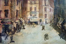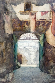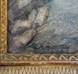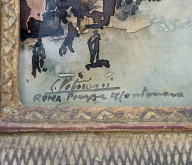 Coppia di scorci di Roma, sec. XIX-XX, acquerello su carta applicata su cartone, cm 29x24, firmati "C. Vetriani" e iscritti "Roma" in basso a sinistra, entro cornice
