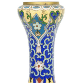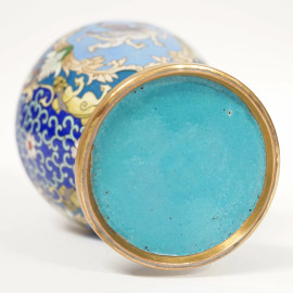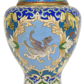 Coppia di vasi cloisonné con rifiniture dorate e decorazioni policrome con draghi e motivi vegetali, Cina, sec. XX, alt. cm 26, (difetti)