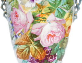 Coppia di vasi in ceramica nei toni blu, bianco e oro con decorazioni floreali, Francia, fine XIX- inizi XX secolo, cm 52x28, (difetti)
