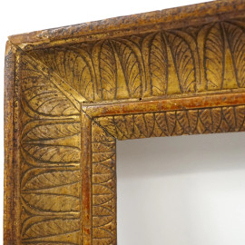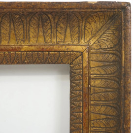 Cornice Impero in legno intagliato e dorato, XIX secolo, ingombro cm 36,5x48, battente cm 39,7x26,4