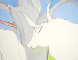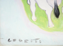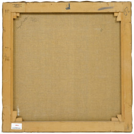 Due buoi al pascolo con albero, olio su tela, firmato in basso a sinistra, cm 70x70,5, entro cornice