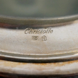 Due legumiere ovali Christofle (una con coperchio) con corpo liscio e recipiente interno in vetro, max cm 13,5x37x25