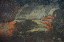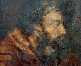 Figura maschile con libro, olio su tela, XIX-XX secolo, cm 73x98,5, entro cornice (difetti e mancanze)