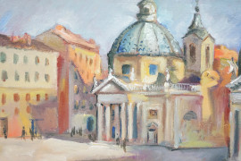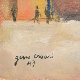 Gino Coari (1905-2005) Santa Maria in Montesanto (Roma), olio su tela applicata su cartone, cm 25,5x34,5, firmato e datato "49" in basso a sinistra, (difetti)