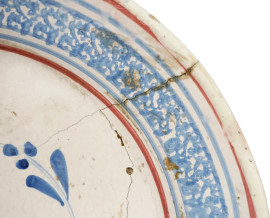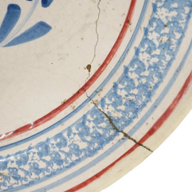 Grande piatto in maiolica policroma, XIX-XX secolo, diametro cm 43 (difetti)