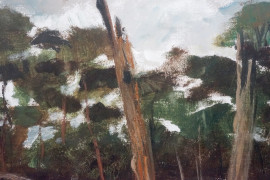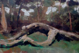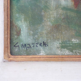 Il gigante caduto, sec. XX, olio su compensato, cm 40x50, firmato in basso a sinistra, entro cornice