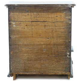 Inginocchiatoio in noce a tre cassetti con decori intarsiati in varie essenze, Emilia, XVIII secolo, cm 86.5x50.5x72.5 (parti sostituite e segni del tempo)