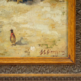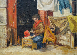 La pappa, olio su tavoletta, firmato e datato in basso destra G.G. Giuseppina 1896, cm 27,5x16, entro cornice