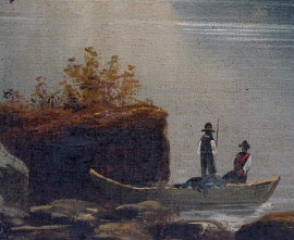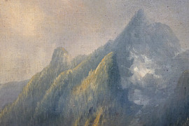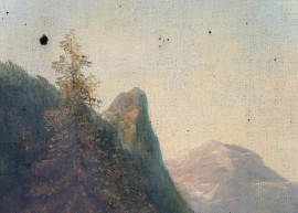 Lago montano, sec. XIX, olio su tela, cm 53x79,5, (difetti)