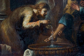 Lavanda dei piedi, olio su tela, XVII secolo, cm 62x102, entro cornice