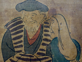 L'offerta, Arte orientale, XIX-XX secolo, acquarello su carta, cm 12,5x23, entro cornice