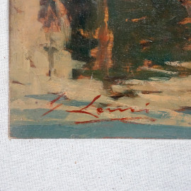 Calafati Livornesi, olio su tavoletta, cm 18x29, firmato in basso a sinistra, entro cornice, corredato di certificato di autenticità a firma Massimo Lomi