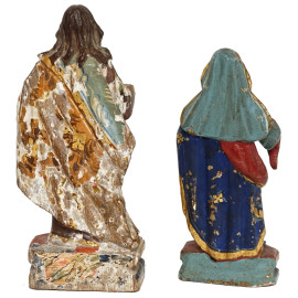 Lotto composto da due sculture da presepe in legno policromo e occhi in vetro, sec. XIX-XX, alt. cm 25, (difetti e mancanze)
