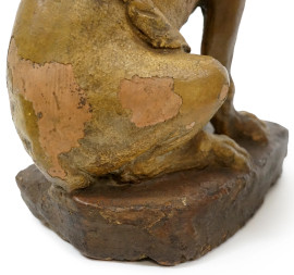 Lotto composto da tre cani in terracotta dipinta, epoche diverse, altezza max cm 34, (difetti)