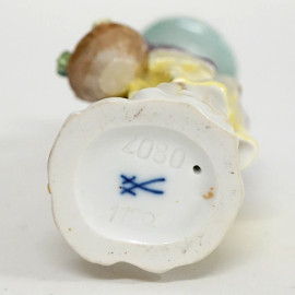 Lotto di due sculture in porcellana policroma rappresentanti due fanciulle, Meissen, XIX secolo, altezza max cm 13