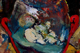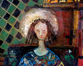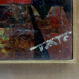 Madonna con il Bambino, olio su tavola, XX secolo, cm 56,5x23, entro cornice