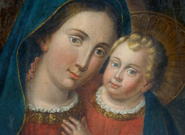 Madonna con il Bambino, olio su tela, firmato e datato a destra Martorelli 1875, cm 63,5x49,5, entro cornice