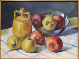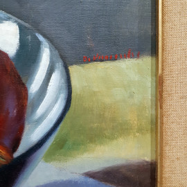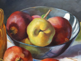 Maestro del Novecento, Natura morta con frutta e brocca, olio su tavola, cm 45x60