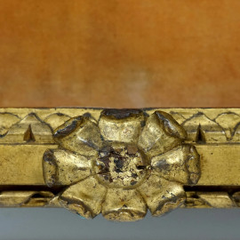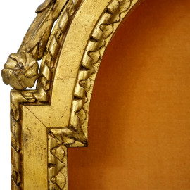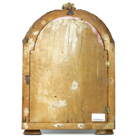 Mensola a bacheca centinata a due scomparti in legno dorato e intagliato, sec. XIX-XX, cm 59x49x6, (difetti)