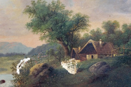 Minna Bachmann (att. Germania 1860-1887), lotto composto da quattro paesaggi, sec.XIX, olio su tela, cm 18,5x29, firmati, entro cornice. (Difetti)