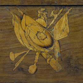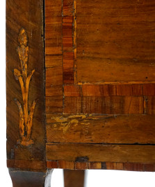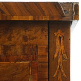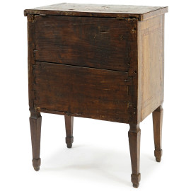 Mobiletto in legno intarsiato con cassetto a ribalta, sec. XVIII, cm 76x53x37. (Difetti)