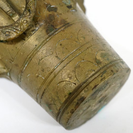 Mortaio medico con pestello in bronzo dorato, manifattura mediorientale, inizio sec. XIX, max cm 21x17,5