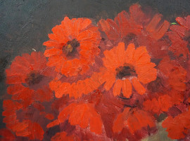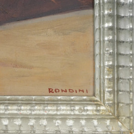Natura morta con vaso di fiori, olio su tavoletta, firmato in basso a destra Rondini, sec. XX, cm 41x45,4, entro cornice