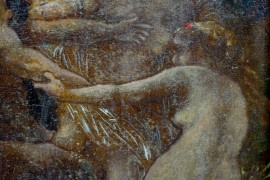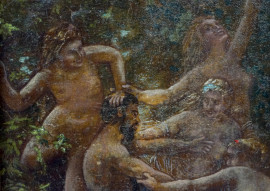 Ninfe e un satiro, olio su tela, XIX-XX secolo, cm 20x14, entro cornice
