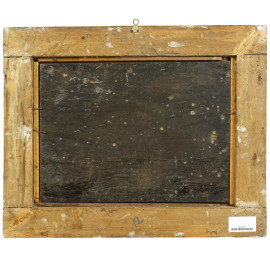 Paesaggio con figure, sec. XIX, olio su tavola, cm 29,5x40,5, entro cornice, (difetti e fessurazioni)