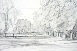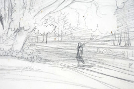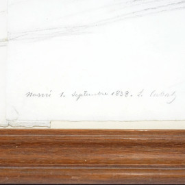 Paesaggio di Narni, matita su carta, firmato e datato L. Cabat 1838, cm 46x83, entro cornice, (difetti)
