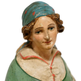 Pastorella con agnello, ceramica policroma, alt. cm 38,5, (difetti)
