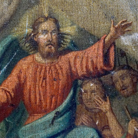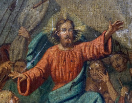 Pesca miracolosa, olio su tela, XX secolo, cm 41x32, entro cornice (difetti)