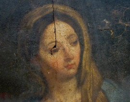 Pittore del XVIII secolo, Annunciata, olio su carta, cm 24x18, entro cornice (difetti)