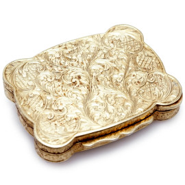 Portacipria in argento dorato cesellato e pietre varie con decoro vegetale centrale a motivi vegetali, inizio sec. XX, cm 5x7x1