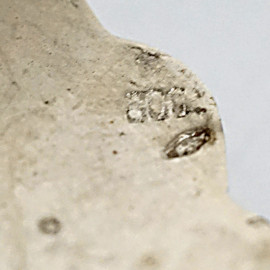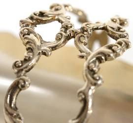 Portagrissini in argento con bordo mistilineo e manico decorati a cesello a motivi vegetali, poggiante su quattro piedini a foggia di foglie, XX secolo, gr. 320, cm 8,5x30x8