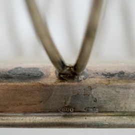 Portapane in argento a forma di cestino con manico, XX secolo, peso gr. 740, cm 23x34,5x24