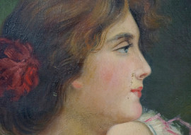 Profilo di donna, olio su tela, sec. XIX-XX, cm 57x44, (difetti)