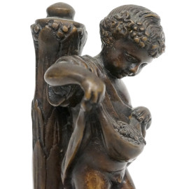 Putto, bronzo su base in marmo, sec. XIX-XX, alt. cm 19,5