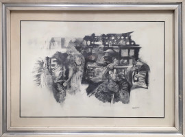 Renzo Vespignani (1924-2001) Disegno a matita su carta, cm 40x60, firmato