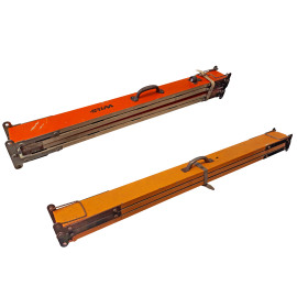 Oggetti per arredo industrial, lotto composto da due antiche stadie (o mire) metriche graduate telescopiche vintage pieghevoli in legno, utili per misurazioni topografiche e mire per teodolite, per la misura dei dislivelli del terreno, misura ciascuna circa 4 metri