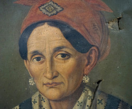 Ritratto di popolana, sec. XIX, olio su tela, cm 64x51, (difetti)