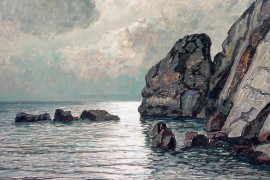 Marina, olio su faesite, cm 30x38, firmato in basso a destra, entro cornice