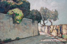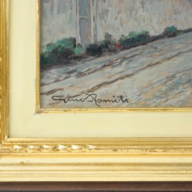 Via delle Vignacce (Montenero, Livorno), olio su faesite, cm 40x30, firmato in basso a sinistra, entro cornice, corredato di certificato di autenticità rilasciato dalla Bottega del Quadro di Livorno