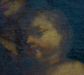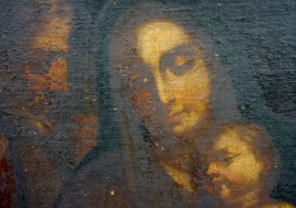 Sacra famiglia, sec.XVIII, olio su tela, cm 74,5x63, entro cornice (Difetti)