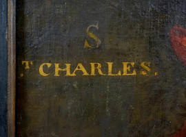 San Carlo Borromeo, XVIII secolo, olio su tela riportata su cartone pressato, cm 113x57, entro cornice