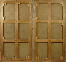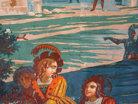 Scena cavalleresca, tempera su carta applicata su tela, XX secolo, cm 97,3x183