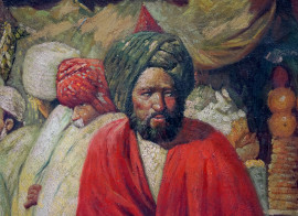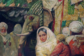 Scena di mercato, XX secolo, olio su tela, cm 60,5x90,5