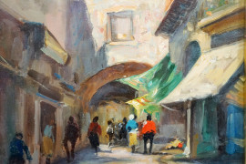 Scorcio di vicolo, sec. XX, olio su compensato, cm 30,5x20, entro cornice