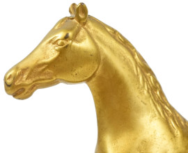 Scultura in bronzo dorato rappresentante un cavallo, base in marmo, XX secolo, cm 27x23,5