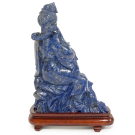 Scultura in lapislazzulo su base in legno teak, Cina, sec. XX, alt. cm 18
